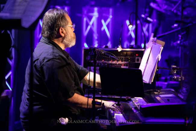 Music is certainly in my DNA. I’ve had many mentors and teachers that have shared their knowledge and wisdom with me, and I can do that technical thing, but for those of us who are fans, Pink Floyd has always touched us in a very personal way. For me, playing this music live for you is the best life gets. It’s two hours on stage with nothing else on my mind. It’s a challenge, it’s a privilege, and it’s exhilarating.Lucky for me I’m recreating the music of a keyboard player named Richard Wright, who’s role in Pink Floyd aligns very closely to who I am as a player. He provides the atmosphere, the clouds passing by, the waves on the shore, the birds in the distance and the thunder clouds that surround the music. He’s the unifying element that is always there supporting the other players. My task is to learn his method and get inside his head. This requires a lot of listening. It can take months, years to get close to it. Every year when The Floyd starts a new season, I go back and do revisions with a precise, analytical approach, having developed the ability to isolate parts mentally when listening to music and transcribe to paper what is on the recording. Doing this not to memorize but to recreate exactly what Richard played. Sure, I could learn the chords and play the parts the way Rob Lawrence would naturally do them, but the parts must contain all the voices, chord inversions, the timing and natural intuitive process of the musician who wrote and recorded the parts originally. When you hear my keyboards on stage, you are hearing as close to what Richard Wright played as possibile.